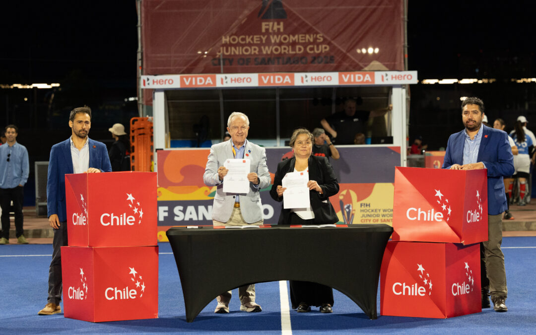 una ceremonia realizada en el entretiempo del partido entre Chile y Malasia en el Centro Deportivo de Hockey Césped del Estadio Nacional, María Teresa Saldías, directora ejecutiva de la Fundación Imagen de Chile, y Miguel Ángel Mujica, Presidente del Comité Olímpico de Chile (COCH), firmaron este pacto, que apunta a potenciar la imagen de Chile a través del deporte y, al mismo tiempo, otorgar mayor visibilidad a los logros deportivos de los representantes del país alrededor del mundo.
